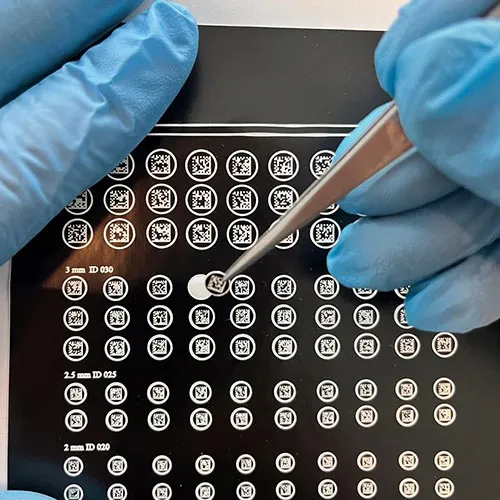 QR Key ile 2D Matrix Barkodlama yöntemine olanak tanımayan plastik, ahşap gibi ürünlerin takibini sağlamak amacı ile üretmiş olduğumuz ısı ve suya dayanıklı takip etiketlerimiz hastanelerimizin isteği doğrultusunda minimum 1,8 mm’den başlayan boyutlarda üretilebilmektedir. İstenildiğinde cerrahi aletler üzerine de uygulanabilmektedir.